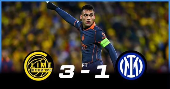 欧冠:博德闪耀主场三球完胜 国际米兰客场1-3陷绝境