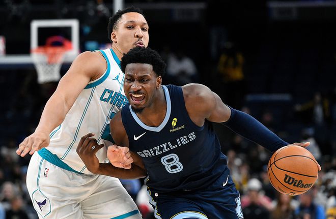灰熊主场迎战黄蜂,灰熊少了莫兰特、伊迪、阿尔达马、小皮蓬、杰罗姆,黄蜂少了普拉姆利,黄蜂优势明显,最终以112-97大胜灰熊。米勒17中9(三分8中4)得到26分3助,布里奇斯11中8(三分7中4)得到20分6板3助,迪亚巴特9中8得到18分19板2断。灰熊方面杰克逊20中10(三分9中4)得到26分4板4助2断,考沃德9中6(三分4这)得到17分2板5助。