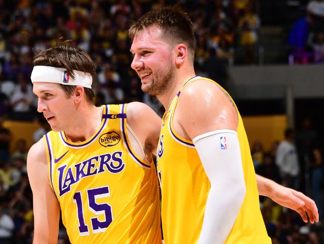 湖人上一场比赛142-111击败了奇才,东契奇贡献了37分11个篮板13次助攻的数据,詹姆斯20分,艾顿28分13个篮板。