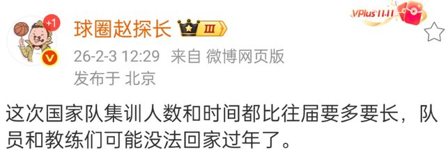 就在大名单即将公布的时候,已经有媒体人放风,本次集训会有很多的球员入选,同时时间也会很长,几乎是一个月的时间,包括不会有春节假期。