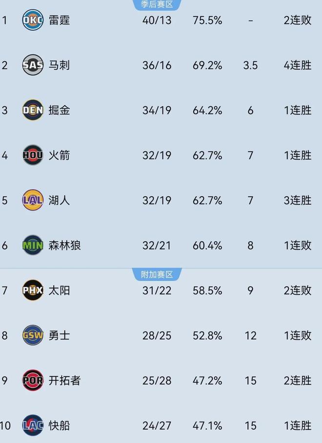湖人当前32胜19负西部第五,战绩打平第四的火箭,领先第七的太阳2个胜场,落后第三的掘金1个胜场,距离杀进前三甲和掉出季后赛区域都是临门一脚的事,必须得珍惜剩余赛程的每一场比赛。