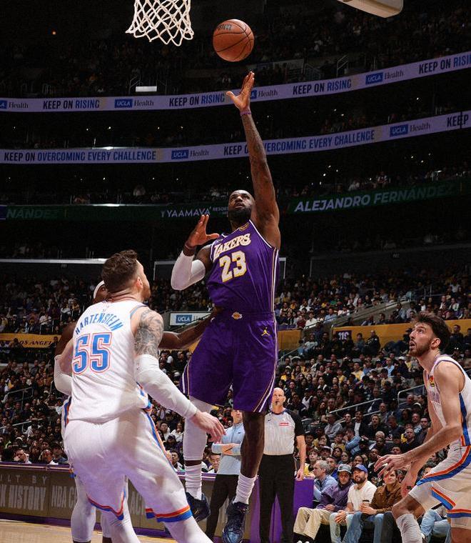 湖人这一场比赛也缺少了主力控卫东契奇,这也让勒布朗詹姆斯成为了首发五虎的战术核心,四旬老汉虽然三分球失准,但是冲击内线的效果不错,第二节还上演了一记精彩的滑翔劈扣,最终砍下了22分、6个篮板、10次助攻和1次抢断的全面个人数据。