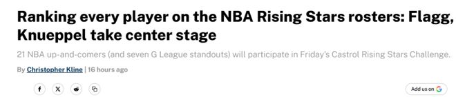 杨瀚森排在第22名!美媒《fansided》在全明星周末即将到来之际,提前公布出入选NBA新秀挑战赛的新星排名,其中克努佩尔与弗拉格两大最佳新秀热门占据前二,火箭队谢泼德则高居第六。