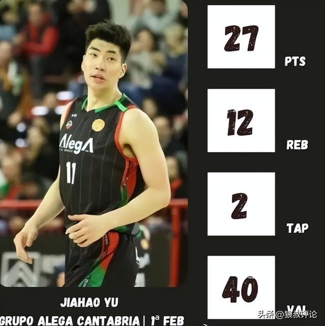 此役,余嘉豪代表埃斯特拉首发出战,投篮11中9,罚球10中9,砍下赛季新高的27分12板2帽,另有2助1断。