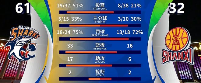 开场后没多久上海男篮就展现出极强的统治力,尤其是替补登场的刘铮,他单节拿到11分,帮助上海男篮在首节就建立起两位数领先优势。【上海男篮 27-15 山西男篮】