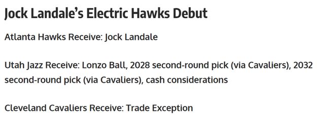 爵士得到:鲍尔+两枚次轮签+部分现金;