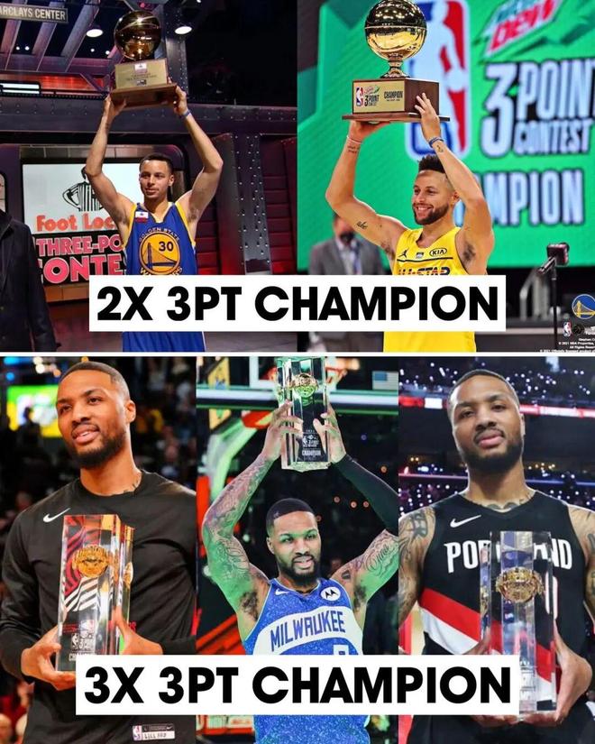 以及,库里、汤普森、利拉德、布克,这四人加起来一共7次三分大赛冠军,如果齐聚一堂肯定观赏性拉满。