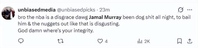 美球迷 :NBA真是令人失望,穆雷整晚都在胡作非为,他居然帮助快船解困,简直太令人厌恶了。NBA还有诚信可言吗?