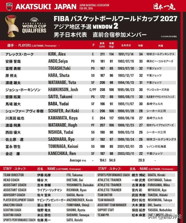 日本男篮经历了亚洲杯低迷后,渡边雄太重返日本男篮,帮助球队取得2连胜,与韩国并列小组前二名。