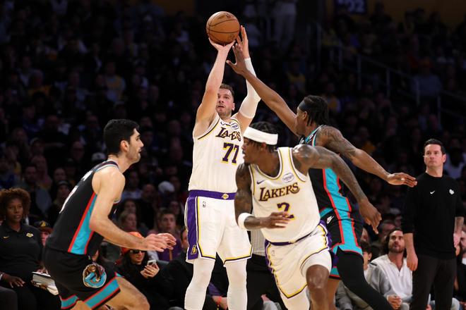 在詹姆斯状态回暖的同时,东契奇则持续交出稳定输出,20投10中,三分10中4高效拿下36分9板8助1帽。