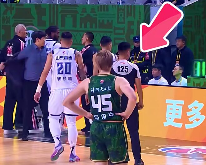 面对裁判如此吹罚,山东队主教练邱彪十分不满意,他认为山东队被裁判针对了,于是就找裁判进行理论,然而,在理论的过程中,邱彪越来越激动,后来,邱彪怒火中烧,脱掉了自己的西装,狠狠地砸在了地上,冲着裁判走去,似乎要打125号裁判一样,吓得裁判也是不断后退……好在山东队两名球员及时拉住了邱彪,才没有让冲突事件升级!最终,邱彪被当值裁判直接夺权,驱逐出场……
