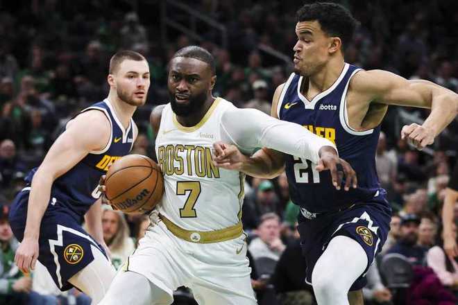 中场休息回来,双方连续两节单节不足30分,且第三节均是单节不足25分。凯尔特人在60-63落后情况下,很快打出一波12-0攻势反超9分,双方之后再度紧咬比分缠斗。凯尔特人单节24-21净胜3分,三节结束凯尔特人82-79领先掘金。前三节比赛双方均是4人得分上双,掘金三分37中16,沃特森三分5中5得到21分与穆雷17+6+11;凯尔特人三分29中13,布朗27+6+4与怀特15+4+4。