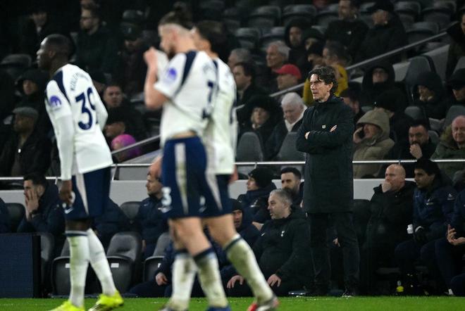此外2025夏窗热刺砸下2.11亿欧元引进哈维·西蒙斯、库杜斯、特尔等球员,但无人能填补孙兴慜离队后的创造力真空。其中哈维-西蒙斯适应期长达5个月,场均关键传球仅1.8次(低于联赛平均2.6);库杜斯被对手针对性封锁后,进攻端彻底依赖个人突破,无体系支撑;特尔不仅在欧洲超级杯罚丢点球,半个多赛季下来更是发挥糟糕。同时主力中场麦迪逊(12月重伤)、库卢塞夫斯基(11月膝伤)长期缺阵,导致中前场组织链断裂,球队在英超最后15轮仅打入14球,场均0.93球为队史同期最低。
