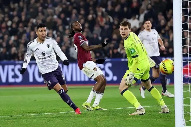 下半场开始不久,西汉姆联又给了曼联当头一棒——第50分钟,鲍文右路低平球传中,前点的绍切克在人群中先出一脚,进皮球撞进了拉门斯镇守的球门。西汉姆联,领先了。