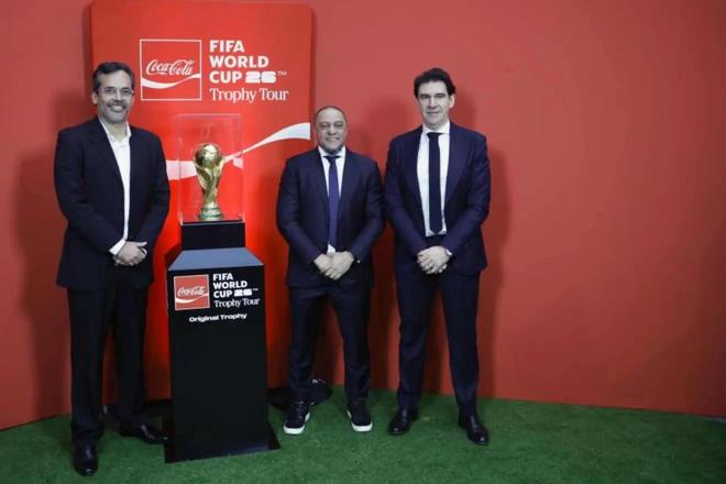 此次世界杯奖杯的世界巡展来到了皇马的主场伯纳乌球场,西班牙国家队的发展与技术总监卡兰卡以及巴西的传奇球星罗伯托-卡洛斯出席了仪式。