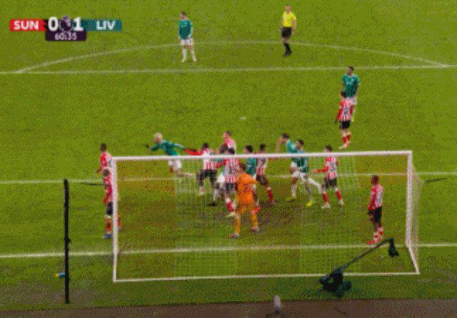 第61分钟,萨拉赫主罚角球,范戴克跃起将球顶进。