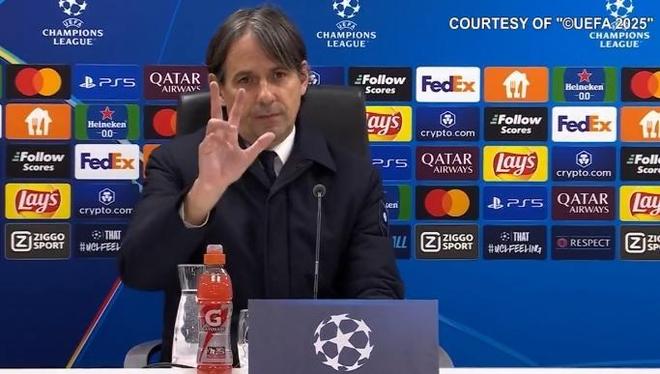孔蒂是国米的前前任主帅,无独有偶,国米的前任主帅也伸过手指!这是发生在上赛季,国米在欧冠1/8决赛首回合客场2:0击败费耶诺德后,当记者问到国米的目标是不是双冠王时,小因扎吉打断记者提问并霸气竖起三根手指表示:不是双冠,是有意甲、欧冠和意大利杯三项冠军需要追逐!