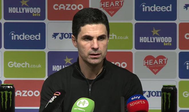 英超第26轮,阿森纳客场1-1战平布伦特福德,赛后,枪手主帅阿尔特塔出席新闻发布会接受媒体提问。