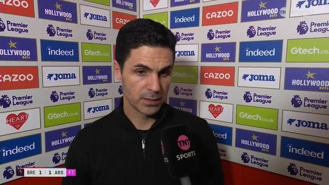 率队在英超第26轮客场1-1战平布伦特福德之后,阿森纳主教练阿尔特塔接受了来自TNT体育的采访。