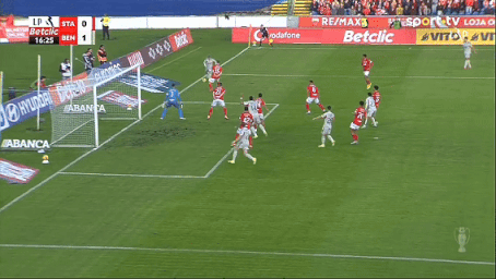 比赛开始后,如同外界预期那样,强大的本菲卡很快控制上场的局面,第16分钟,本菲卡就打出教科书式进攻。阿劳若右路送出精准传中,帕夫利季斯在小禁区内高高跃起头槌打破僵局,本菲卡1-0领先。