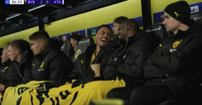 第86分钟,兴高采烈,多特替补席有说有笑