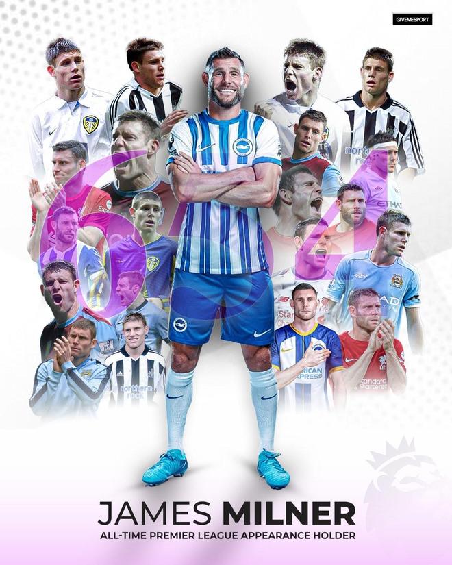 英超第27轮,布莱顿客场对阵布伦特福德,40岁的老将米尔纳首发出场,他也以654次出场超越加雷斯-巴里,正式创造英超历史出场纪录!