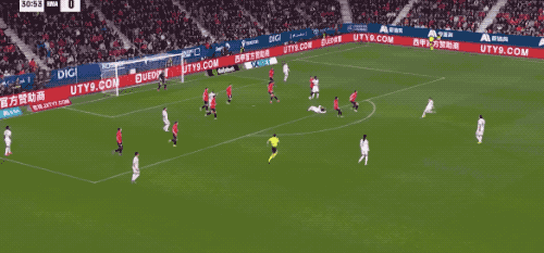 上半场补时阶段,琼阿梅尼禁区内的凌空抽射没能踢正部位,反倒是歪打正着,奥萨苏纳门将做出了关键扑救。
