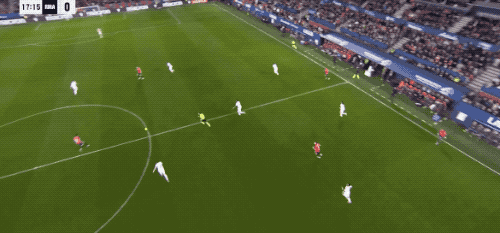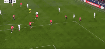 第55分钟,皇马大兵压境,居莱尔本打算和姆巴佩配合,皮球被拦截,居莱尔索性自己射门,皮球擦着横梁稍稍高出。