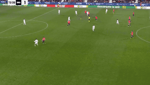 卡瓦哈尔的直塞打穿奥萨苏纳的防线,阿拉巴的射门被埃兰多挡出底线,两个人都相当遗憾。
