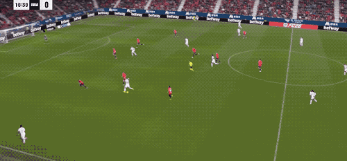第30分钟,奥萨苏纳差点取得领先,穆尼奥斯边路传中,布迪米尔的头球击中立柱,弹了出来。