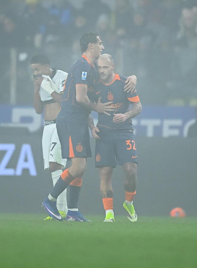 下半场的国米进攻势头不减,无奈前场把握机会还需要提升,迟迟未能打进扩大优势的进球;姆希塔良和苏契奇的远射全部被化解;第67分钟,姆希塔良摆脱直塞,苏契奇小角度的打门却被门柱拒绝;第93分钟,巴雷拉长传,小图拉姆摆渡,博尼近距离铲射锁定胜局,但VAR介入判定小图拉姆手球在先进球无效。