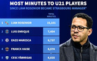 断崖领先,罗塞尼尔执教白堡同期使用U21球员时间五大联赛第1